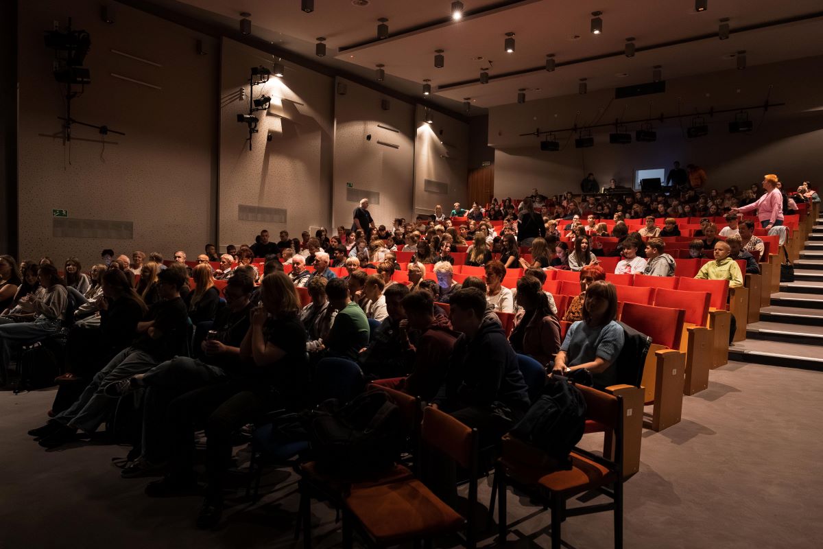 Krótko przed godziną 12:00 widownia Centrum Kultury zapełniła się młodzieżą szkolną. Spektakl został świetnie przyjęty, o czym świadczyła żywiołowa reakcja publiczności na koniec i burza oklasków. O tym, że przedstawienie wywołało sporo refleksji mogliśmy usłyszeć w rozmowie z widzami, podczas której młodzież pytała także m.in. o specyfikę pracy aktora i tworzenie spektaklu.