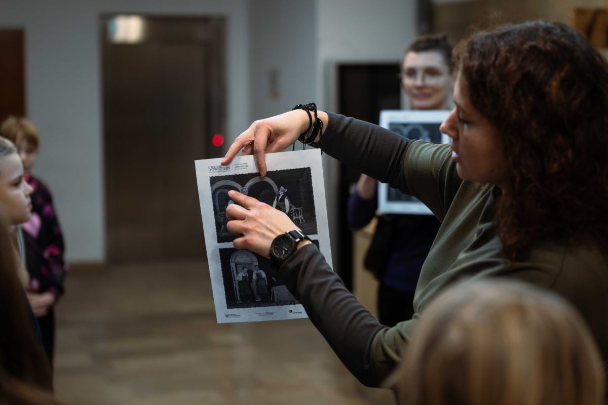 Uczestnicy nie tylko poznawali dzieje budynku, lecz także sprawdzali swoje talenty w kreatywnych zadaniach: rozwiązywali zagadki, podejmowali wyzwania dla przyszłych projektantów i odkrywali, jak wygląda teatr „od środka”. Dziękujemy wszystkim klasom, które wyruszyły z nami w tę teatralną podróż – do zobaczenia podczas kolejnych działań!