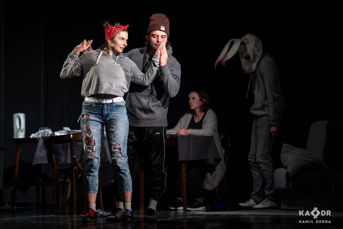 Pierwszy raz w weekend i pierwszy raz podczas realizacji tej edycji projektu Teatr Polska „O tym można rozmawiać z królikami” w reż. Piotra Soroki zostało zaprezentowane wieczorem. W Centrum Promocji Kultury w Drezdenku o godz. 17:00 na widowni zasiadły całe rodziny z młodymi ludźmi. Część z nich brała udział w warsztatach przed spektaklem: Joanna Marcinkowska i Natalia Walczak-Wachowska poprowadziły zajęcia dla chętnej młodzieży z dwóch grup teatralnych. Młodzi ludzie poznawali specyfikę pracy z ciałem i przekazywania emocji bez słów.