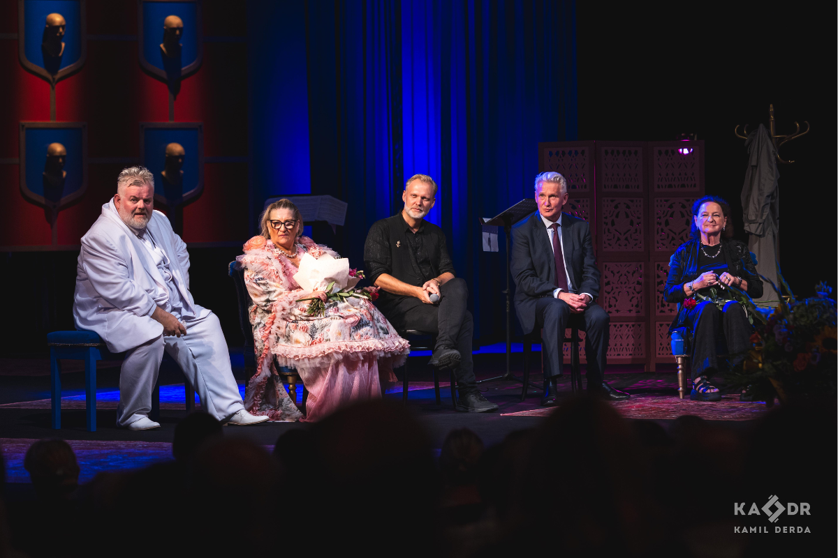 Przed rozpoczęciem premiery, zaraz po uroczystych powitaniach, Panowie Dyrektorzy zaprosili na scenę Panią Annę Chinalską - członka Zarządu Województwa Lubuskiego, która wygłosiła kilka serdecznych słów, doceniając pracę Lubuskiego Teatru i zapraszając wszystkich do częstych wizyt w naszych teatralnych progach.