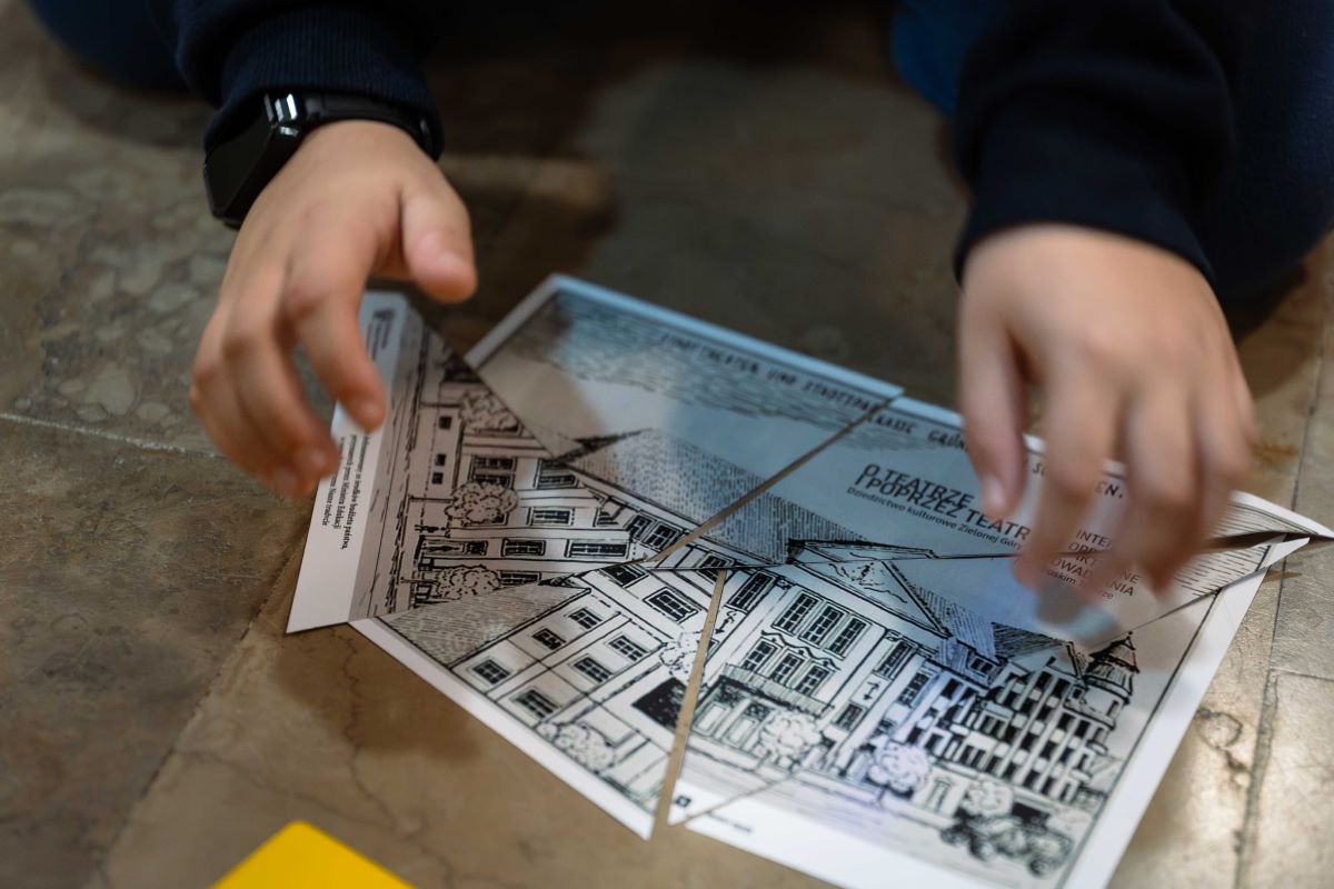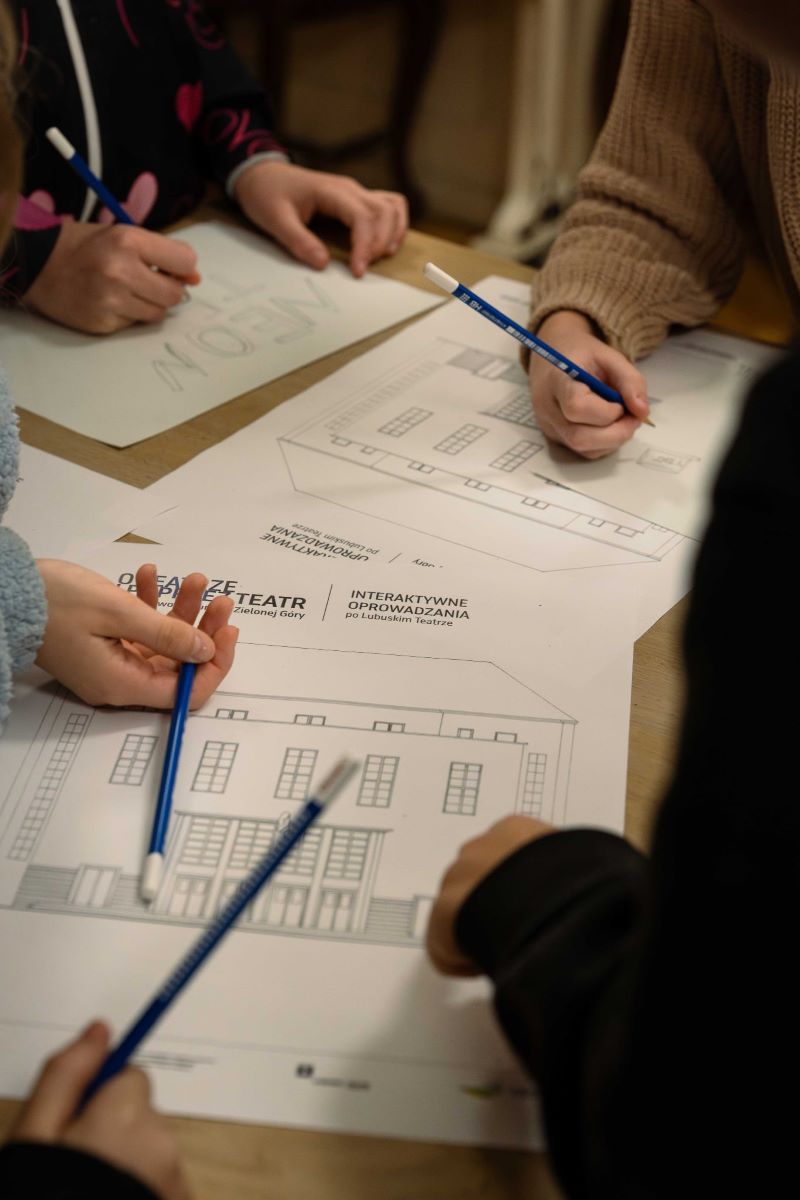 Uczestnicy nie tylko poznawali dzieje budynku, lecz także sprawdzali swoje talenty w kreatywnych zadaniach: rozwiązywali zagadki, podejmowali wyzwania dla przyszłych projektantów i odkrywali, jak wygląda teatr „od środka”. Dziękujemy wszystkim klasom, które wyruszyły z nami w tę teatralną podróż – do zobaczenia podczas kolejnych działań!