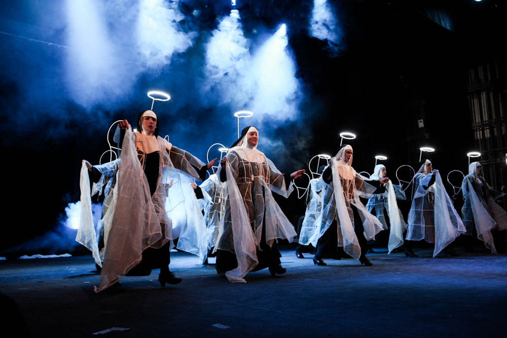 Pełna niebagatelnego, często absurdalnego humoru, śpiewu i tańca, przezabawna komedia w reżyserii nieodżałowanego Jana Szurmieja - miała swoja premierę na deskach Lubuskiego Teatru w kwietniu 2013 roku. To historia artystycznych poczynań tytułowych Siostruń - sióstr z zakonu w Hoboken, które swoją grą, śpiewem i dowcipem starają się zdobyć pieniądze na… pogrzeb otrutych przez przypadek 52 zakonnic! Znakomite sceny grupowe, wspaniałe kreacje wokalne, no i wyjątkowa Siostra Amnezja (w tej roli znakomita Anna Haba) - bawiąca publiczność do łez!