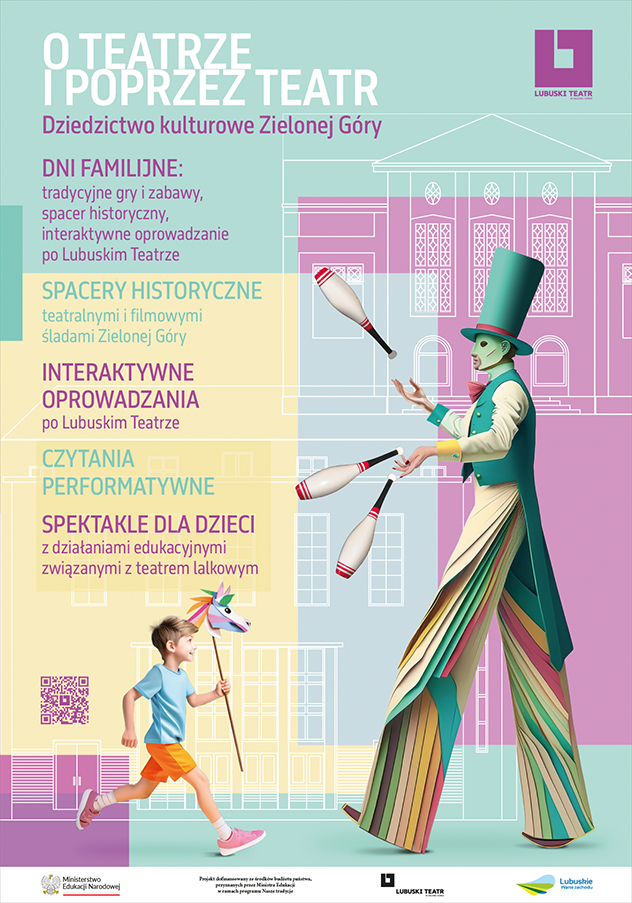 Interaktywne oprowadzanie po Lubuskim Teatrze skierowane jest do dzieci i młodzieży 7+ wraz z opiekunami. W przestrzeniach teatru będą na was czekać przystanki z rodzinnymi zadaniami, m.in. rozwiążecie zagadki, zamienicie się w projektantów czy odkryjecie kilka tajemnic związanych z historią Lubuskiego Teatru. Motyw przewodni oprowadzania stanowi architektura budynku: od pierwszych przedwojennych niezrealizowanych planów fasady, przez kolejne jego rozbudowy, po powstanie Teatru Lalek.