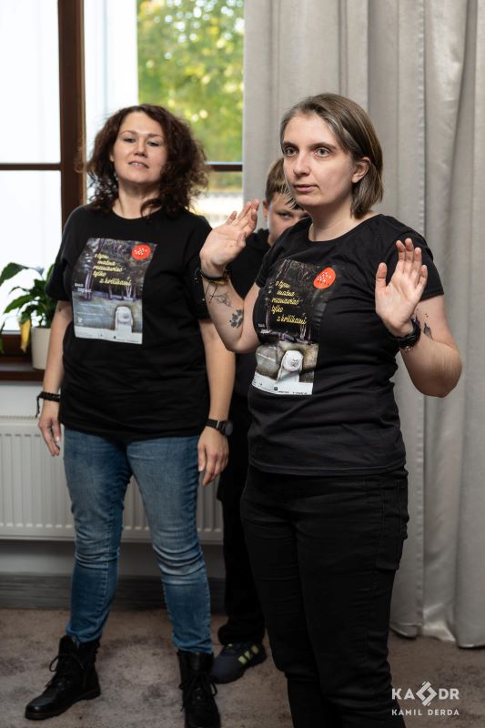 Pierwszy raz w weekend i pierwszy raz podczas realizacji tej edycji projektu Teatr Polska „O tym można rozmawiać z królikami” w reż. Piotra Soroki zostało zaprezentowane wieczorem. W Centrum Promocji Kultury w Drezdenku o godz. 17:00 na widowni zasiadły całe rodziny z młodymi ludźmi. Część z nich brała udział w warsztatach przed spektaklem: Joanna Marcinkowska i Natalia Walczak-Wachowska poprowadziły zajęcia dla chętnej młodzieży z dwóch grup teatralnych. Młodzi ludzie poznawali specyfikę pracy z ciałem i przekazywania emocji bez słów.