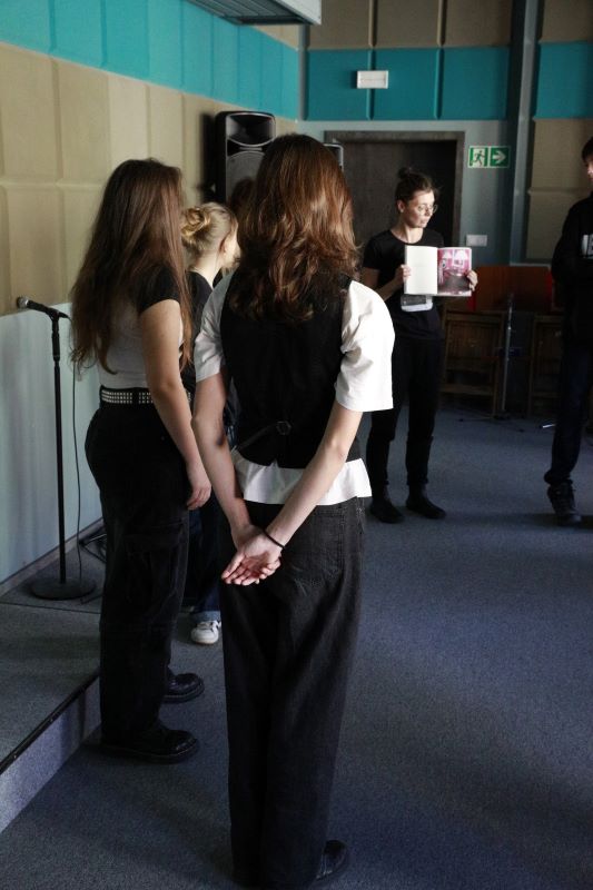 Przed spektaklem odbyły się warsztaty teatralne, wprowadzające w jego tematykę, które poprowadziły Emilia Adamiszyn i Natalia Walczak-Wachowska.