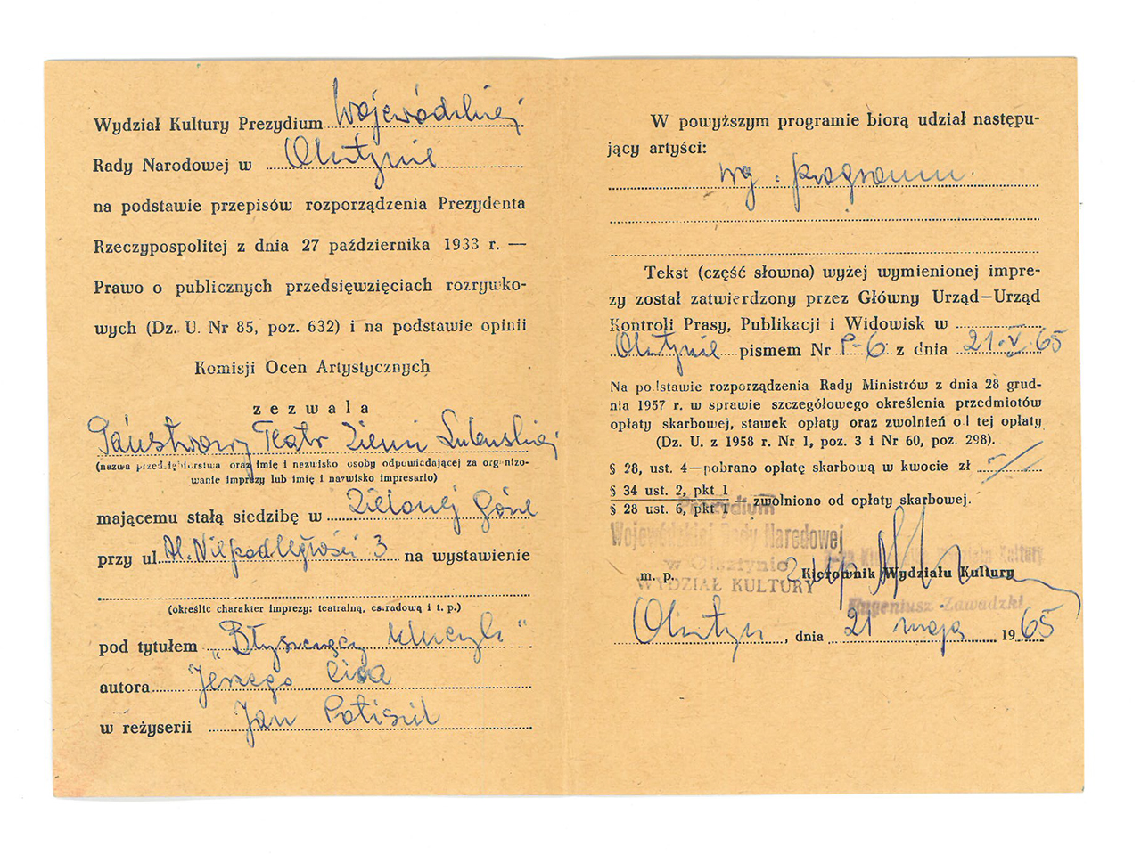 Premiera: 7.11.1964 r. (Scena Lalkowa)